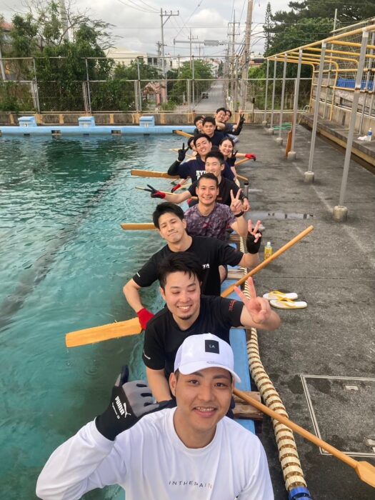 監督「少なくとも30年以上前からほぼ毎年参加しています。那覇ハーリーは毎年5月に開催されるので、4月に入社した新入社員にも力となってもらい、1か月半しっかりと練習を行います。毎年那覇市内にある金城中学校のプールをお借りし、整った環境で練習に打ち込んでいます。」