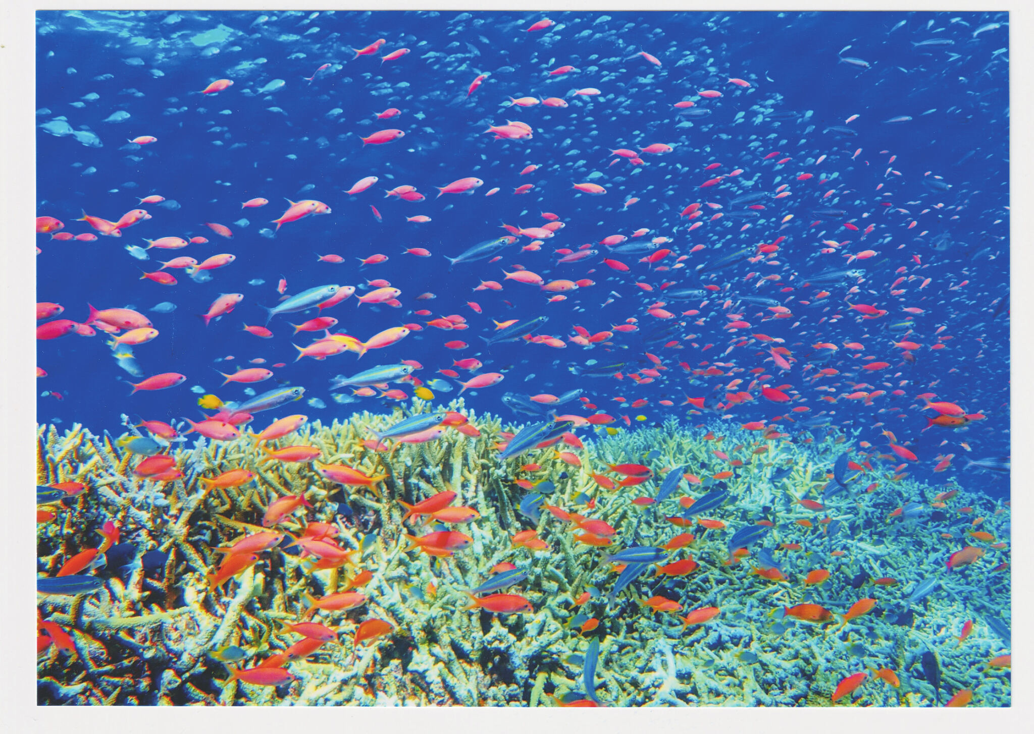 見た瞬間、「ここに行きたい、ここでじっとしていたい!」と思いました。青い海に映えるキンギョハナダイの群れをとらえた、気持ちのいい作品です。