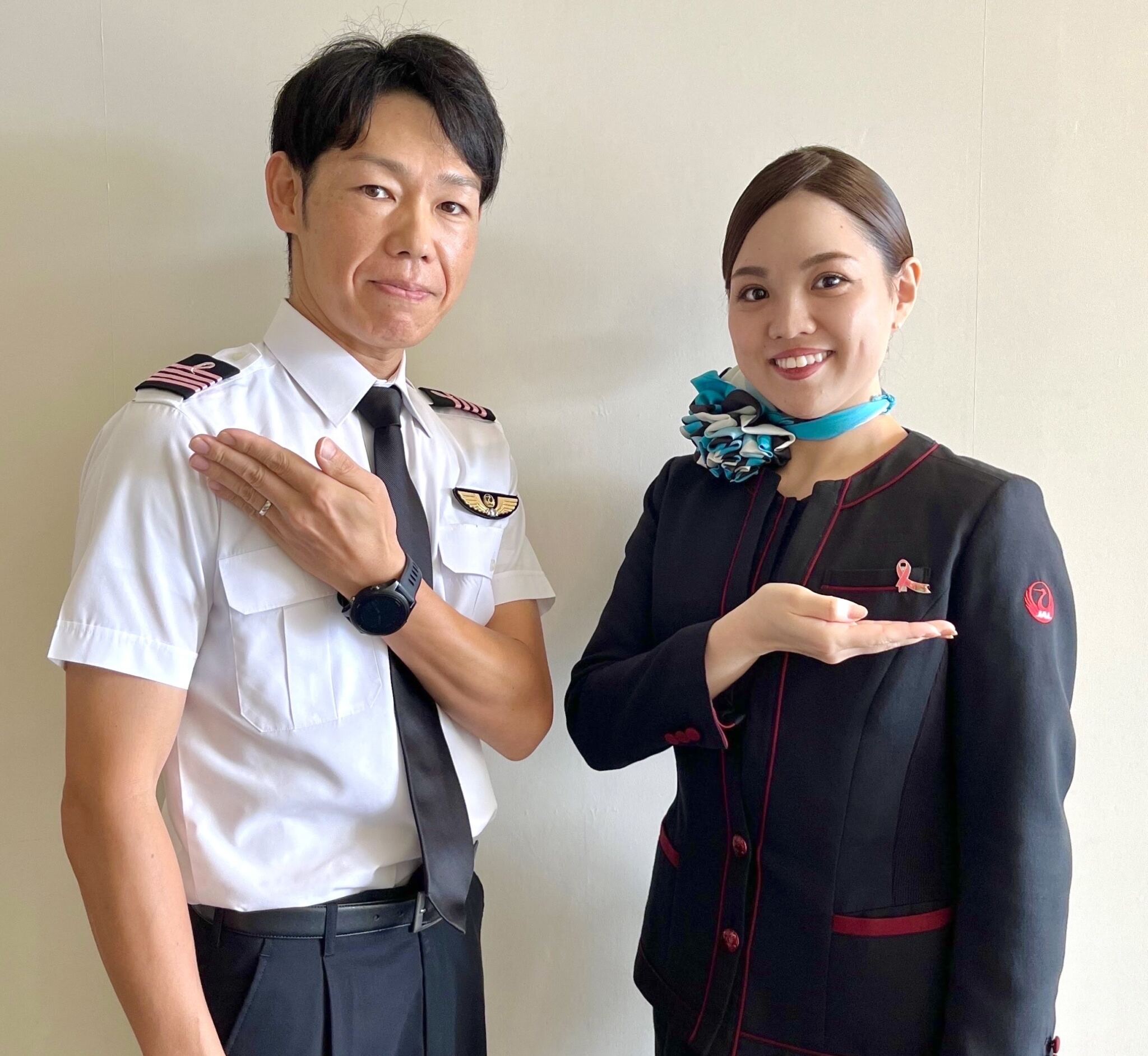 ◆客室乗務員や空港職員など、接客部門のピンクリボンバッチ着用
