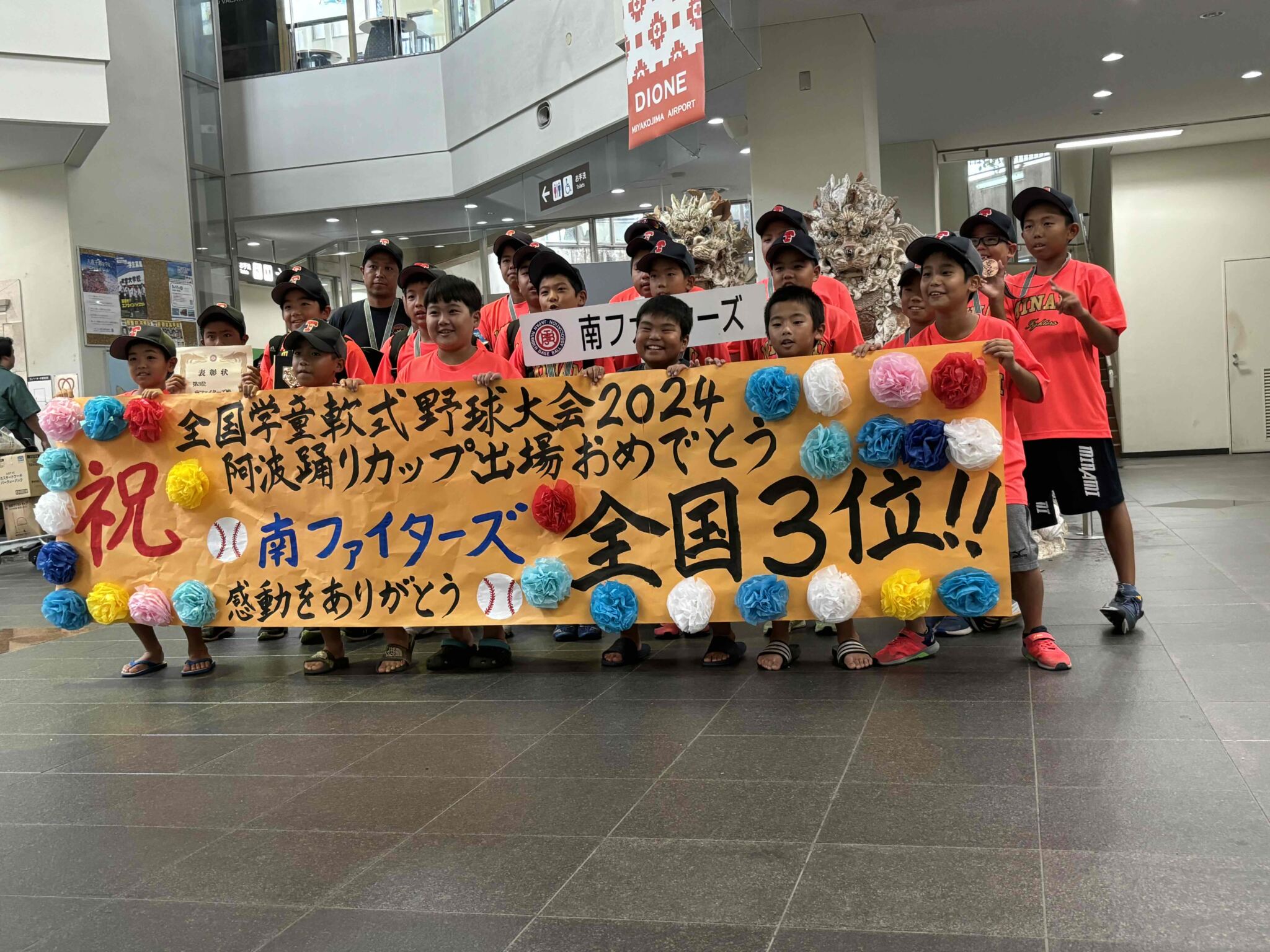 宮古島への帰島時には、盛大にお迎えを実施しました。南ファイターズの皆さん、3位入賞おめでとうございます!!!