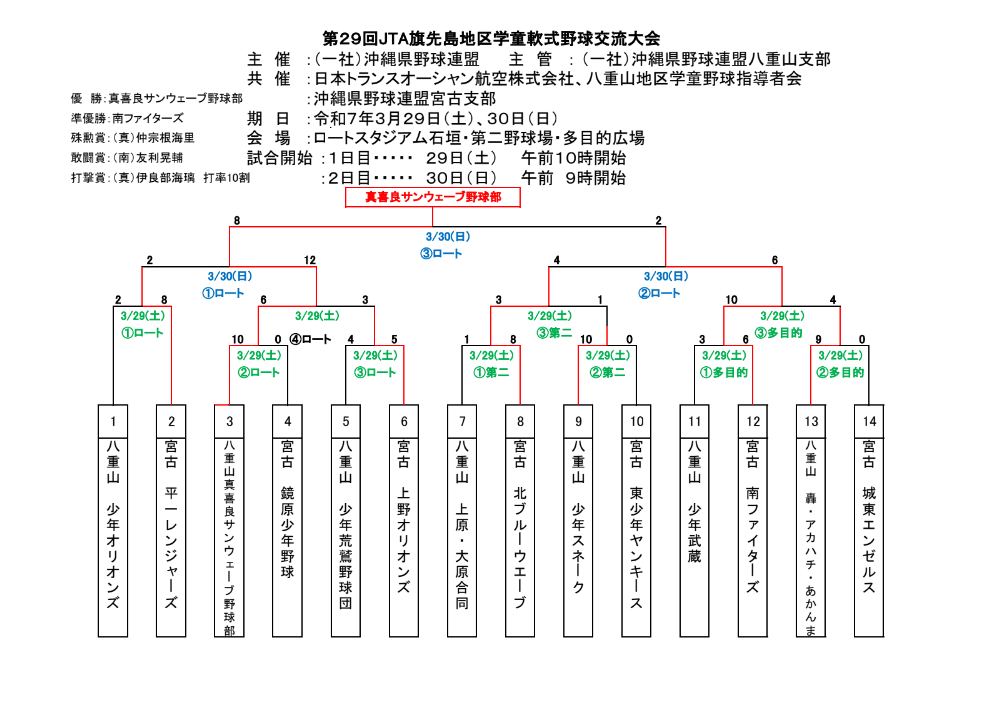 2025年3月29日~3月30日の2日間、第29回JTA旗先島地区学童軟式野球交流大会が石垣島にて開催されました。