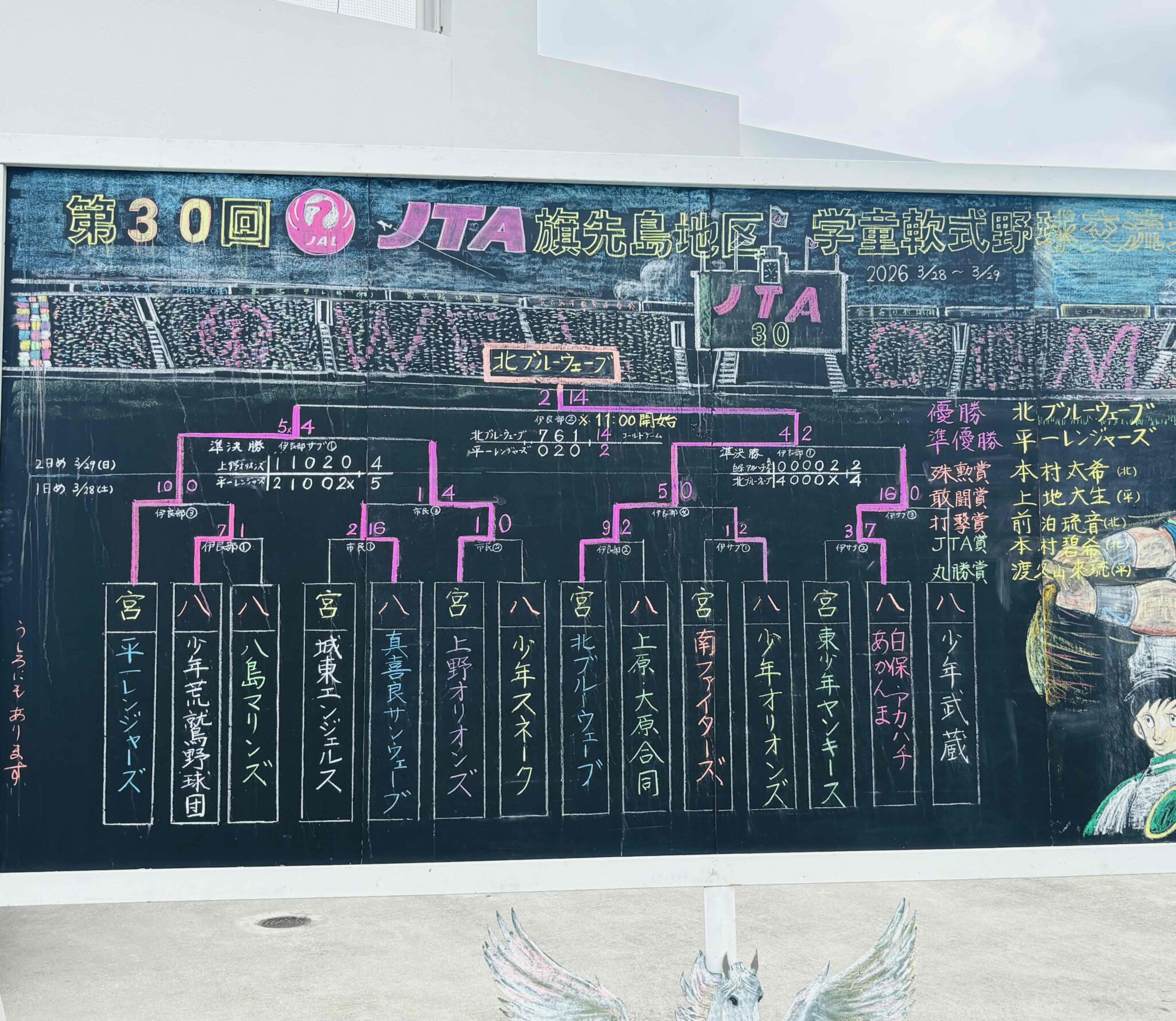 ▼チョークアートのトーナメント表 【作:宮古島市教育委員会 教育長・宮城 克典 様】