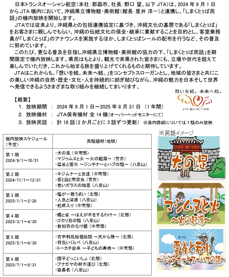 「しまくとぅば民話」をJTA機内で放映開始