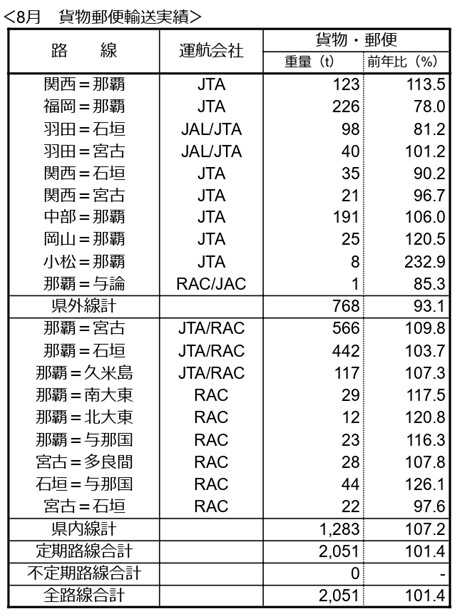 JAL・JTAグループ航空会社は沖縄関連路線について、2024年8月の輸送実績(速報値)をとりまとめましたのでご報告いたします。