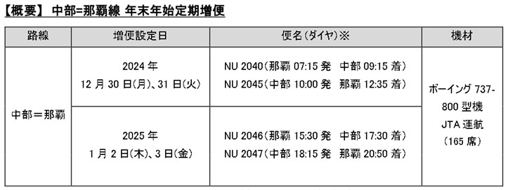JTA、年末年始に「中部=那覇線」を増便!