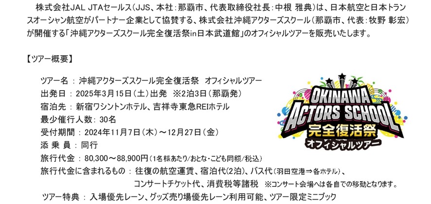 JJS、「沖縄アクターズスクール完全復活祭」オフィシャルツアーを発売
