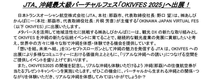JTA、沖縄最大級バーチャルフェス「OKIVFES 2025」へ出展!