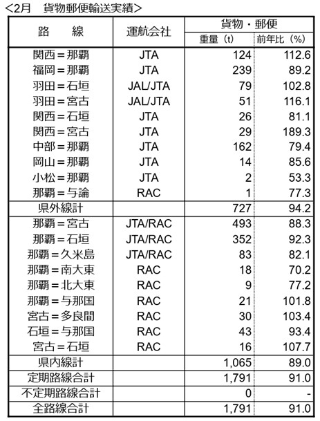 JAL・JTAグループ沖縄関連路線 月報(2025年2月速報値)