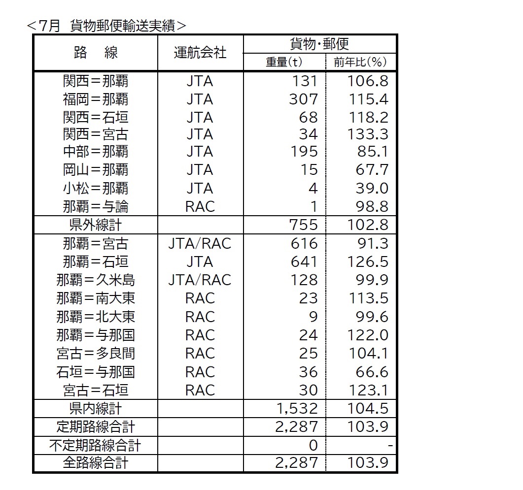 JAL・JTAグループ沖縄関連路線 月報(2025年7月速報値)