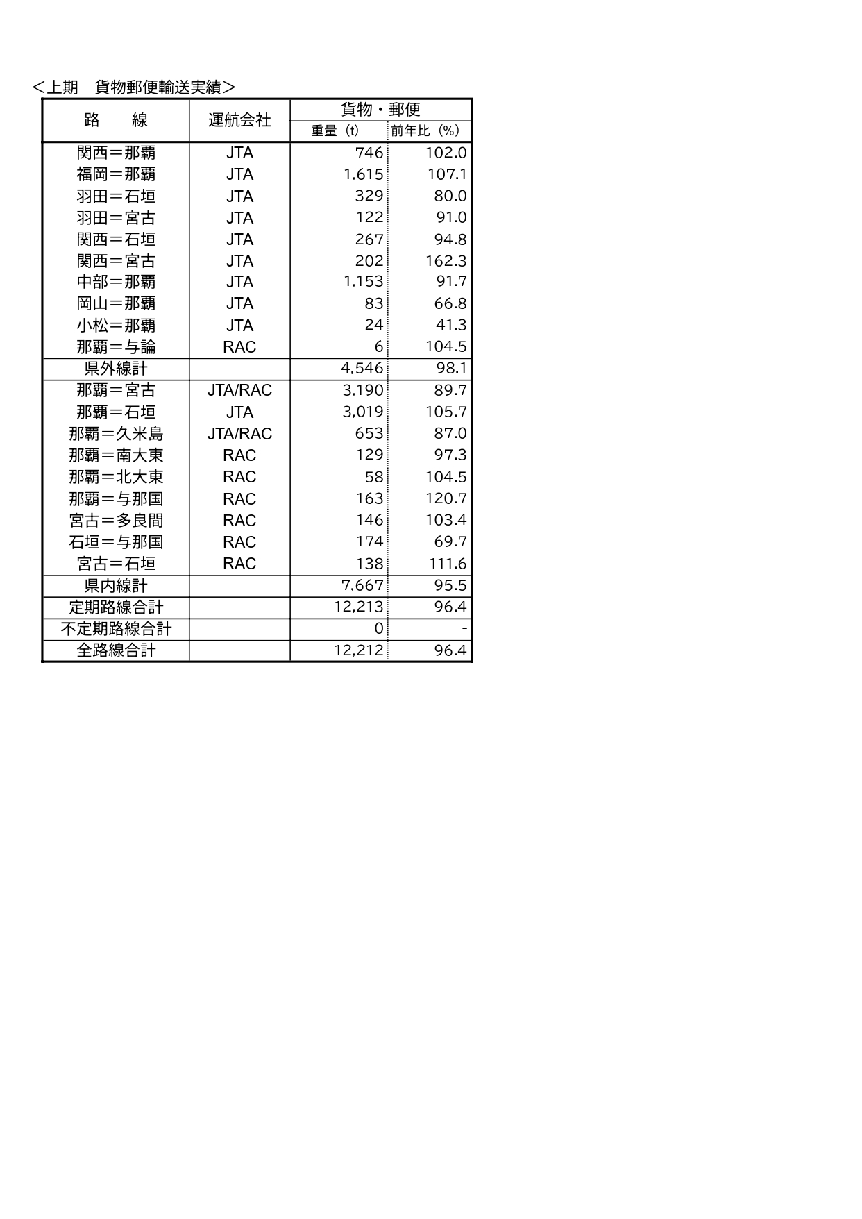 JAL・JTAグループ沖縄関連路線 月報