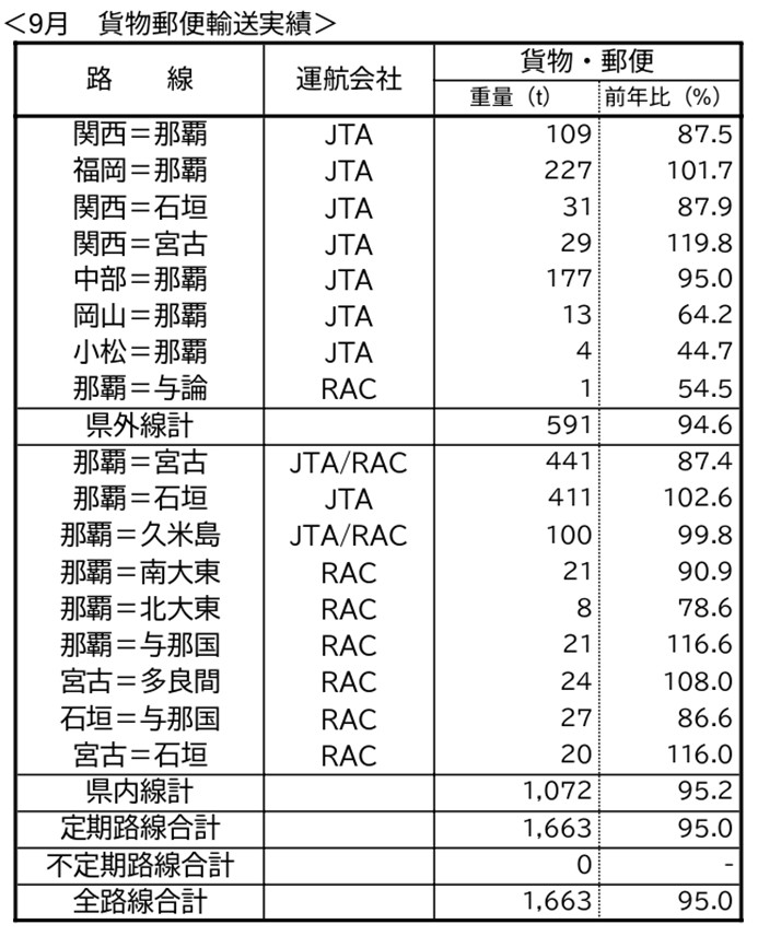 JAL・JTAグループ航空会社は沖縄関連路線について、2025年9月および2025年度上期(4~9月)の輸送実績(速報値)をとりまとめましたのでご報告いたします。