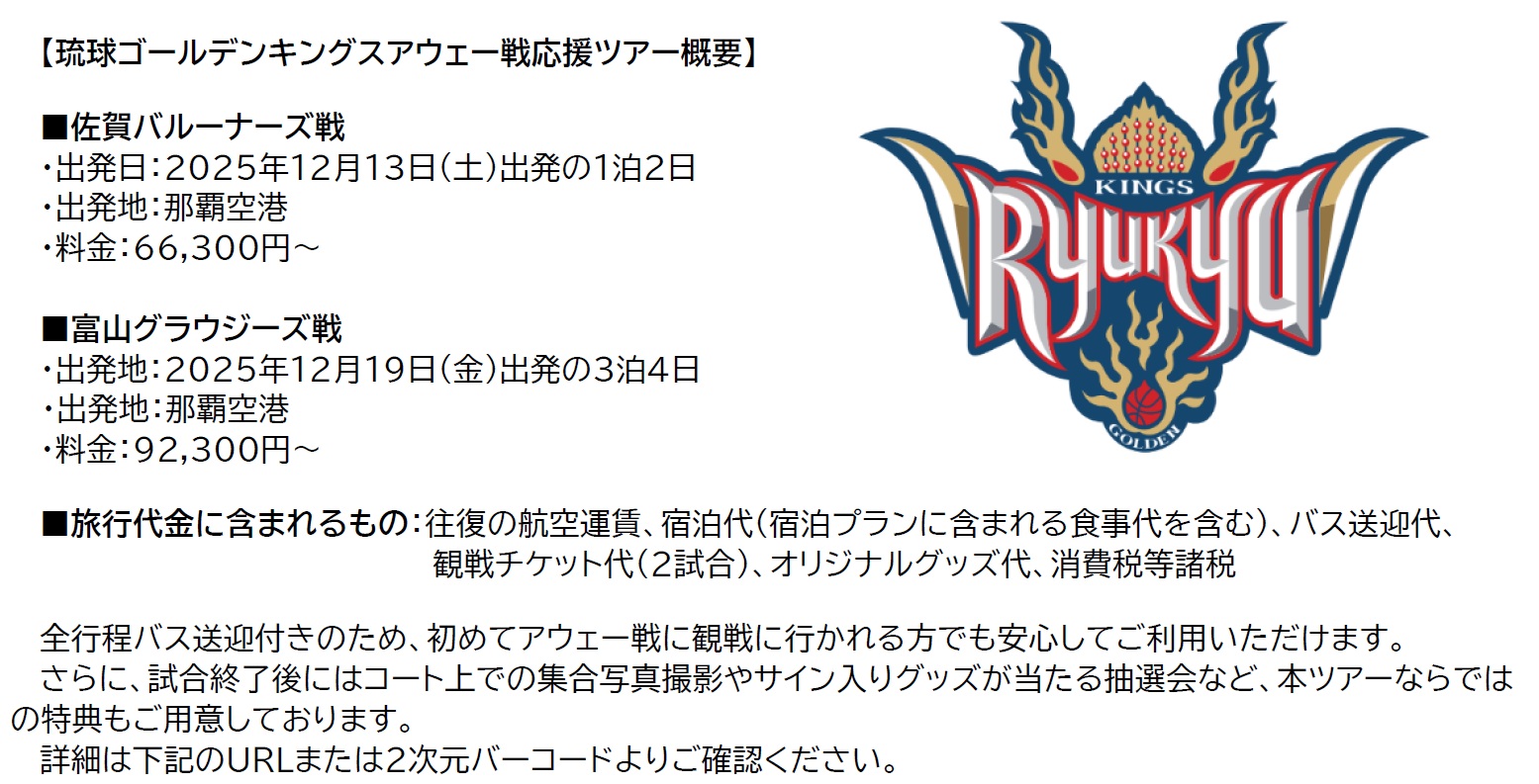 琉球ゴールデンキングス 那覇発アウェー戦応援ツアーを企画!