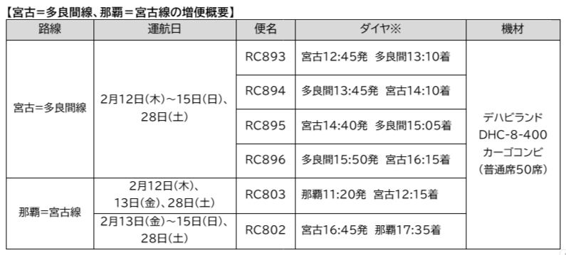 琉球エアーコミューター(本社:那覇市、代表取締役社長:山田 賢哉、以下RAC)は、2月の宮古=多良間線、那覇=宮古線において定期増便の運航を決定いたしました。